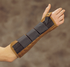 - Leatherette Wrist and Forearm Splint. Special "wedge contour" design truly fits the hand, wrist, and forearm. Does not extend past palmar crease. New design allows full thumb freedom. Malleable stays contour to the patient's palm. Perforated vinyl allows patient's skin to breathe. Right hand. Size: medium.