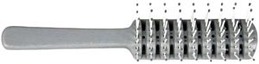 Nylon hairbrush. 8" long, gray. Rounded plastic bristles.