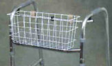 • Universal walker basket, attractive, white plastic-coated basket attaches easily with 5 velcro style straps, features plastic trap with a cup holder.