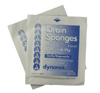 Dynarex Sterile 4" x 4" Drain Sponge, 6 Ply, 2/pch, 25 pch/tray, 12 tray/cs.