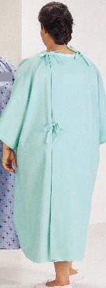 - Premium Patient Plus Gown, Aqua in color, One size fits all. Full back overlap, tie back closure, fits patients up to 5XL. 47" length, 7" spacious insleeve, 87" sweep for complete coverage. 50% Polyester/50% Cotton.