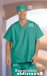 Unisex Drawcord Scrub Pants. Size: Large. Color: Ciel Blue. 100% cotton. Reversible. Right hip pocket on both sides. Drawcord closure with easy glide color-coded webbing.