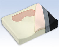 - Gelcell Contour Wheelchair Cushion by FLA Orthopedics. A high resilience, molded and contoured foam base contains an anatomically positioned soft gel insert in the ischial relief area. The viscoelastic gel insert provides maximum pressure relief under the ischial tuberosities and coccyx. A top layer of viscoelastic foam as well as the leg troughs and medial and lateral thigh supports provide excellent conformity to the body's contours. Fluid-proof stretch cover is 90% Nylon and 10% Spandex with a non-slip bottom. Removable cover is wipeable and washable. Color: Black. Size: 18" x 16" x 4".