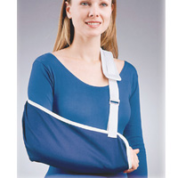 - Traditional envelope arm sling comfortably distributes the weight of the arm following surgical or non-surgical treatment of the arm, hand or shoulder. Made in a strong, seamless quality design. Easy, fast and simple application with slide buckle adjustment. Comfort padding on shoulder strap. Available in denim, navy poly/cotton or muslin material. X-Small (9 - 11"), Small (11 - 13"), Medium (13 - 14-1/2"), Large (14-1/2 - 15-1/2"), X-Large (15-1/2 and up).