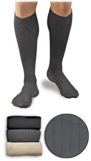 - Men's Microfiber Pin Stripe Dress Socks, 20-30 mm Hg Firm Support. Size: X-Large (Men's shoe size 12 1/2+). Color: Black. Help to prevent and relieve leg fatigue and heaviness, ankle and foot swelling/aching, mild spider veins and varicose veins by increasing circulation in the legs. Ultra fine fibers are knitted together for a super soft touch, excellent drape and fit, and breathability. Features a comfortable, turned welt leg band that won't constrict, a non-binding comfort balloon toe, and cool cotton inside layer. Comfortable, preventative support while still remaining fashionable.