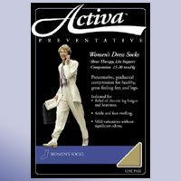 - Light Compression Women's Dress Socks, 15-20 mm Hg Support Socks. Recommended for anyone wanting great feeling legs, especially those who sit or stand for long periods of time. These support socks help to prevent and relieve leg fatigue and heaviness, ankle and foot swelling/aching, mild spider veins and varicose veins by increasing circulation in the legs. Experts recommend wearing compression socks during air travel to prevent "Economy Class Syndrome", a medical condition associated with inactivity during long flights (also known as deep-vein thrombosis). Stylish with their ribbed appearance, these compression socks give comfortable, preventative support while still remaining fashionable. Non-binding top band and comfortable balloon toe. Colors: Black, Tan, White, Navy. Fits women's shoe size 8 to 10-1/2. Size: Large.