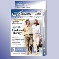 - Moderate Compression Thigh High with Uni-Band Top, 20-30 mm Hg. Designed to prevent venous disorders of the leg such as varicose veins, spider veins and ankle/foot swelling. Provides moderate graduated compression to increase circulation in the legs. Ideal for frequent or long air travel to prevent "Economy Class Syndrome", a condition causing blood clots and embolism formation due to inactivity during flying. Knitted with Microfibers, this medical hosiery has a cotton-like softness that wicks moisture away. Relieves leg fatigue and heaviness, ankle and foot swelling, mild spider veins, varicose veins, and for Post Sclerotherapy. Mid-Thigh with Uni-Band Elastic Top for both Men and Women. Colors: Barely Beige, Black. Soft Fit from Activa.