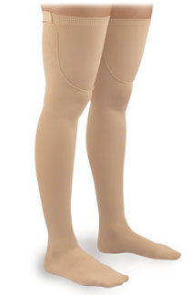 - Thigh High Anti-Embolism Stockings with Closed Toe, Uni-Band Top. 18 mm Hg graduated compression. Size: X-Large. Color: Beige. Thrombo embolic deterrent. For non-ambulatory patients. Use for pre- and post-operative procedures. Traditional, non-sheer fabric. Comfortable, non-binding top bands. Reinforced foot with heel pocket for easy fitting.