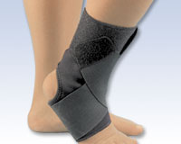 - EZ-ON Wrap Around Ankle Support. Size: XL. Fits 14.5 - 16.5" (measure leg 5" above ankle). Color: Black. This wrap around ankle support provides excellent compression and stabilization to weak or injured ankles. The foot and ankle portion is made with sports neoprene for consistent compression and therapeutic warmth to the joint and soft tissues. The top portion is made with Tri-Permalon for cool, breathable wear. A double elastic strap offers adjustable compression to both sides of the ankle and arch of the foot by simulating taping of the ankle in a figure-eight pattern. Great for nighttime wear to treat ankle injuries and control the edema associated with sprains and strains.