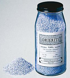 - Drierite Absorbents, Indicating, 8 Mesh, 1 lb., WA Hammond. Absorb 10 to 14% of their weight in water when drying gases. Turn pink when exhausted. Regenerate to original blue color by heating in oven at 218-degrees C (425-degrees F) for 1 hour. No danger of shrinking or channeling. Stable, constant in volume. Nonpoisonous and noncorrosive. Nonindicating absorbent is insoluble in organic liquids.