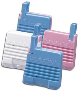- SurgiLance Tenderfoot Incision Device. Newborn. Use: birth up to 3-6 months. Incision: 1.00mm D x 2.50mm L. Color: Pink/Blue. Perform a gentle, sweeping arc incision above the level of sensitive nerve fibers. No need for heel warmers, repeat sampling, and excessive squeezing of the heel. Safe, easy to use, and virtually pain free with less bruising as compared with traditional lancet devices. Blade permanently retracts back into the device, eliminating any chance of an accidental stick and creates a high-quality incision resulting in a sample free of tissue contamination.