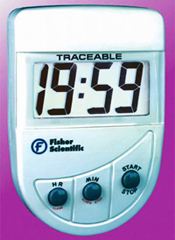 - Fisherbrand Traceable QC Countdown Timer. Timer: 19 hours, 59 minutes to 1 minute. Ideal QC (quality control) countdown and alarm timer-accurate to 0.01%. Alarm sounds for 30 seconds. Features easy three-button operation and giant-size digits, 3/4 in. high - legible from 20 ft. User-friendly, no need to consult the directions for operation. Magnet/clip on back. With 3-year "AAA" battery and serial-numbered certificate to indicate traceability to standards provided by NIST. Net weight: 2 oz. Dimensions: 2L x 3 1/2 W x 1/2 in. H.
