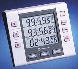 - Fisherbrand Traceable Three-Channel Alarm Timer. Accuracy of 0.001%. Timer: 99 hours, 59 minutes, 59 seconds to 1 second. Stopwatch: 1 second to 99 hours, 59 minutes, 59 seconds. Three-line display; accuracy is 0.001%; 3-channel timing with individual or simultaneous start; "thru-zero" function counts down, alarms and counts up; counts down and up simultaneously; Time-Out mode; memory recall automatically returns to preset time; alarm volume is adjustable; visual and audible alarm operates for one minute or continuously; time-of-day clock with AM/PM indicators; four rubber feet keep instrument off wet bench. 3/8 in. H LCD. With "AAA" alkaline battery for up to two years of use, and chemical-resistant ABS plastic case. Also includes serial-numbered certificate to indicate traceability to standards provided by NIST. Net weight, 3 oz. Dimensions: 1L x 3W x 3 1/4 in. H.