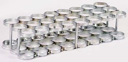 Cylinder Rack. All welded construction. Holds 24 cylinders (3 x 8). Bolts to floor or stands free. 8 1/4" H x 14 1/2" W x 39" L.