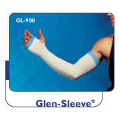 - Western Glen-Sleeve Arm Protectors, Large/XL, Blue. Length: 18 - 20 in. Width: 3 1/2 in. 12 pairs/case. The original Glen-Sleeve designed with a color-coded strip for easy size identification. Knitted tubular sleeves designed to protect the fragile skin of long-term care residents against everyday scrapes, shearing and bumps. Made from polyester, cotton and nylon spandex.