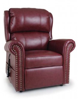 The Pub chair is a traditional style two pillow waterfall back recliner featuring decorative brass nail head trim on both the arms and wings. The supple waterfall, zipper back design allows for customizing comfort. This dual motor chair is part of the MaxiComfort series. Recline in style!