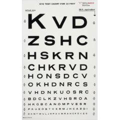 - Snellen-Type 10 Ft Eye Test Chart, 14" x 9". For illuminated eye test cabinet 13-1258. Non-glare black letters on white translucent plastic chart. This chart contains letters of the alphabet which become smaller as the chart goes down.