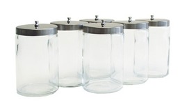 Tongue Blade Jar, Unlabeled. Flint glass jar with overlapping stainless steel cover. Size 7" x 4 1/2".
