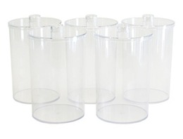Clear Plastic Sundry Jars, Unlabeled. Set of five jars with clear plastic lids.