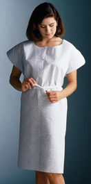 Standard Gown, 3-Ply Tissue, White, 30" x 42". Three layers of tissue bonded into one layer of softness. Gowns offer comfort and absorbency. Reversible, front/back opening. 50/cs.