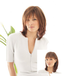 - Infatuation Wig by Raquel Welch. Color: R14/88H. Size: Average. With razor tapered bangs that blend into long razor-cut layers in the sides and back, this precision crafted collarbone length cut reflects a popular trend offered in today's top salons. A Sheer Indulgence Top adds lightness and styling versatility. Front: 4 in. Back: 8 in. Crown: 8 in. Nape: 7 in. Side: 7 in.