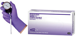 - Safeskin Purple Non-Sterile Nitrile Powder-Free Exam Gloves, size Small. Unique purple color provides quick, visual differentiation from natural rubber latex and other synthetic gloves. Textured fingertips enhance wet and dry grip. Custom design enhances comfort and fit. 9-1/2" length.