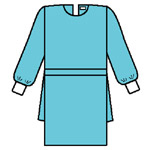 Procedure Gown, Universal, Blue. Protective 3-layer SMS fabric. Potential for light to moderate fluid contact. Knit cuff. Velcro neck closure. Tie waist. Full back. Non-sterile.