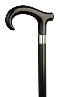 Men's Cane with derby hook shaped handle in simulated shell. Handle made of high impact durable nylon. Black maple shaft. 36" long with steel reinforced suction grip rubber tips.