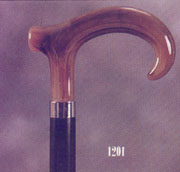 Man's cane with white ivory, derby, hook shaped handle. Black finish.