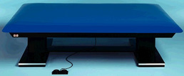 - Hausmann Powermatic Mat Platform. Lifting capacity of 700 lbs. Lowers to 19" for easy accessibility from a wheelchair. Seamless upholstery is nylon reinforced to resist abrasion and shearing. Electric height adjustment 19"-28". Foot control operation. 6 ft x 8 ft Mat Platform, Blue.