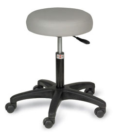 - Choice-Line Air-Lift Stool. Color: Slate Blue. Single lever height control handle. Hand operated air-spring pneumatic height adjustment has 6" range (19.5" - 25.5"). 15" diameter seat, 3" thick foam. Durable 5-leg, black composite base. Five 2" twin-wheel nylon casters. ComfortPlus vinyl has softer feel for enhanced comfort.