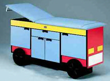 - Hausmann Train Car Design Pediatric Table. Colorful exam/treatment table minimizes young patient`s anxiety while enhancing the room. Padded top for comfort. Storage drawer plus three roomy cabinets provide generous space for storage. 24"W x 72"L x 34"H. Upholstery: #704 Nordic Blue or #707 Black. Specify upholstery color. Tables for Tots.