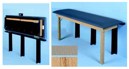 - Hausmann Wall Folding Treatment/Changing Table. Fold-away design saves floor space. 2" thick foam upholstered top. Sturdy, floor-supported wall mounting plate for added strength. Two folding Formica natural oak laminate legs. Upholstery available in 10 vinyl colors. 72"L x 24"W x 31"H Table.