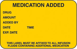 IV Administration Label, "Medication Added". Orange with black print. 2 3/4" W x 1 3/4" H. 1000/rl.
