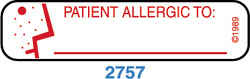 - Allergy Write-On Patient Label, 1000/pk. Label reads: "Patient Allergic To: " Labels are white with red print. Packaged in blister packs for use in label dispensers. Outside label dimensions: 1-5/8"W x 3/8"H.