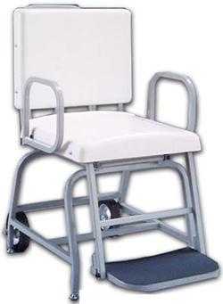 - Mechanical balance beam chair scale featuring easy-to-read graphics. Innovative bubble level indicator ensures optimum balancing and reading ease. Improved strength and durability is achieved with the sturdy all-steel frame and unitized steel base with baked enamel finish. The swing-away arms, fold-up footrest, nonskid feet and large wheels facilitate efficient, safe patient entry and exit. ABS plastic seat and back is comfortable, easy to clean and maintain. Additional features include: Maximum-strength, unitized 3/32" steel, low-profile, non-tip base with steel boxed levers and 3/16" hardened pivots and "V" bearings. Large uncrowded graphics for easy reading. Contemporary-styled balance beam with concealed poise bars. Pound readings. Warranty: five years. Capacity: 350 lbs. Resolution: 1/4 lb. Color: Platinum.