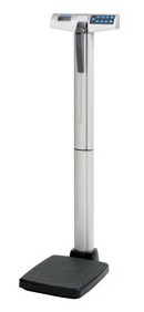 - Professional Digital Scale 500 lb / 227 kg capacity, 0.2 lb / 0.1 kg increments. Large, low platform with non-skid mat for stability and easy access. Easy-read, 1" high LCD readout. User Friendly Interface Features: BMI (easy scroll method). Hold/Release, Zero, KG/LB, Clear, Enter functions. Auto-Zero, 2 minute auto-off (AC mode disabled), low battery indicator. Height rod (24"-84" x 1/8" / 60cm - 213cm x 1mm). Strong aluminium pillar. Updatable Firmware EMR Connectivity via USB 6 AA-cell batteries (included) or 120V AC adapter (not included).
