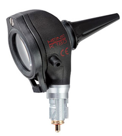- HEINE K 180r Fiber Optic Otoscope: The standard, all around Fiber Optic Otoscope. Distal Fiber Optic (F.O.) illumination with XHL Xenon Halogen Technology. Bright shadow-free light without reflexes. Large-diameter, non-scratch glass viewing window with 3x magnification Large, clear, undistorted image. Airtight window seal. Reliable test of tympanic mobility. Swivelling viewing window built into instrument. Useful for instrumentation, cannot be misplaced.