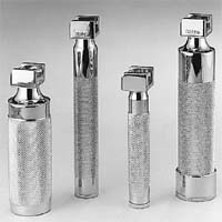 - Rusch Laryngoscope Handle, Medium/Standard, Chrome Plated Brass Finish. This handle will accomodate Rusch FOCS Fiberoptic Blades, Standard/Conventional Blades, and Rusch Lite Disposable Blades. This Medium/Standard Handle Uses: 2-Each of a "C-size" BATTERY. The Chrome Plated Brass Style Handle is available in a variety of other sizes: Small/Penlight, Stubby/Short, Pediatric/Short. Rusch offers a wide range of high quality standard laryngoscope handles that are compatible with all standard/conventional blades manufactured to ISO 7673 standards. These are available in the following finishes: Chrome Plated Brass; Water Resistant Dolphin; Stainless Steel. The designs of these handles have been continually refined through many years of use the world over to minimize maintenance requirements. They are manufactured to exacting specifications from the finest materials to be durable and reliable. Rusch Laryngoscopes are warranted to be of good quality and free from defects in material and workmanship.