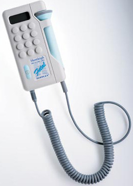 Huntleigh Fetal Dopplex I Plus. Fetal dopplex with LCD display of fetal heart rate, fixed 2 MHz transducer and built-in loudspeaker. Waterproof.