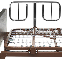 - Safety bed rails. Durable chrome-plated, welded-steel construction. Tool-free assembly. Can be used on all spring-fabric medical-style beds. Locks automatically in raised position; releases easily to lower. For permanent or semi-permanent installation. Overall Height: Above deck raised: 15" Above deck lowered: 1.50". Overall Length: 30". Overall Width: Deck-width adjustability: 34" - 36" Between bed rails: 37" - 39". Product Weight: 25 lb. Warranty: 2 years limited.