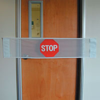 - Posey Door Guard. Provides a clear, recognizable visual image to residents, reminding them not to exit or enter a restricted area. Attaches in seconds with easy to apply hook and loop adhesive strips. Machine washable. Fits doors up to 53" wide. Measures 53" W x 12" H.