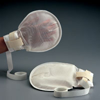 - Posey Rigid Hand Control Mitts. Size: Large. Strap Length: 46". The Rigid Hand Control Mitt's high-impact styrene plate inhibits grasping tubes and is effective in reducing dexterity, while the open design with no finger separators allows patient to exercise fingers. Breezeline mesh back allows skin to breathe and facilitates skin checks. Connecting straps included to limit range of motion, if necessary. Machine washable. One pair per package.