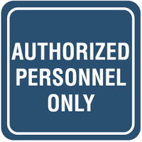 - Authorized Personnel Only Sign. 5 1/2" x 5 1/2". Color: Tan. Use this sign to warn, inform, or instruct visitors and staff members. The white text and graphics are easy to read. Subsurface silkscreened graphics. Made of durable plastic to resist scratches, chemicals, and vandals. Peel-and-stick adhesive tape is included for easy installation.