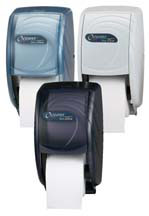 - Oceans Duett Standard Bath Tissue Dispenser. Transparent Black. Capacity: Two 5 1/2" dia., 4 1/2" wide rolls. Increased capacity compared to standard tissue dispensers. Infinity System allows for continual flow of paper and eliminates stub roll waste. Replaceable finger lock allows for lock replacement without replacing the entire cabinet. Break-resistant plastic. 12 3/4" H x 7 1/2" W x 7" D.
