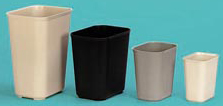 - Rubbermaid 40 quart Beige Wastebasket. UL Listed. Won't burn, melt or contribute fuel to container contents. Won't chip, dent or rust. Recommended for industrial, hospital or institutional use. 11-1/4"W x 15"D x 20"H.