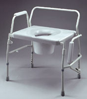 - Easy to operate drop arm mechanism facilitates lateral transfer. All steel frame with VersaGuardr coating is durable and warm to the touch. Extra-wide platform seat maximizes stability and is comfortable for long periods of sitting. Comes complete with pail and lid. 400lb. weight bearing capacity.