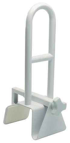 - Bi-Level Tub Guard Rail, White. Heavy-gauge, welded steel construction. Clamp holds firmly to tub wall without marring tub surface. Provides two gripping surfaces to facilitate both entry and exit from tub. Fits tubs with walls 2-3/4" - 6-1/2" thick. Not recommended for use with fiber glass tubs. Tool-free installation. 250 lb maximum weight capacity. Lifetime limited warranty.
