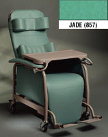 - 565G Preferred Care Recliner, Jade color. Patented infinite recline back ranges from 95 to 145 degrees for increased patient comfort and pressure relief. Unique suspension system self-adjusts to each person, cradling the resident from head to heel, providing for a custom-comfort fit. Low armrest and seat height enables the chair to fit under dining room tables and allows the patient to self-propel. 250lb. weight bearing capacity.