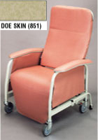 - 565WG Preferred Care Extra Wide Recliner, Doeskin color. All the features and benefits of the model 565 recliner in an extra-wide size. 24" seat size is ideal for patients who require a wider seat width. Directional wheel lock for easy maneuverability. 400lb. weight bearing capacity.